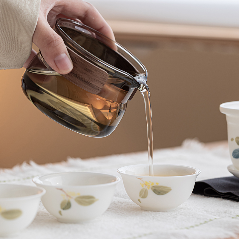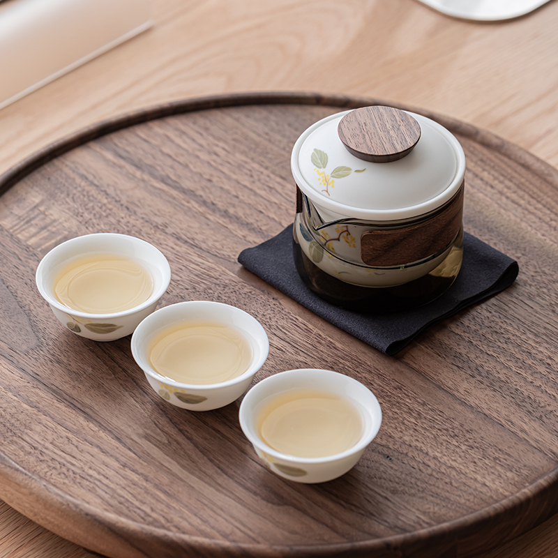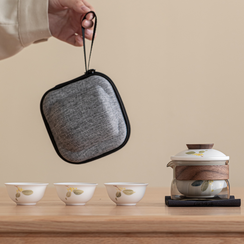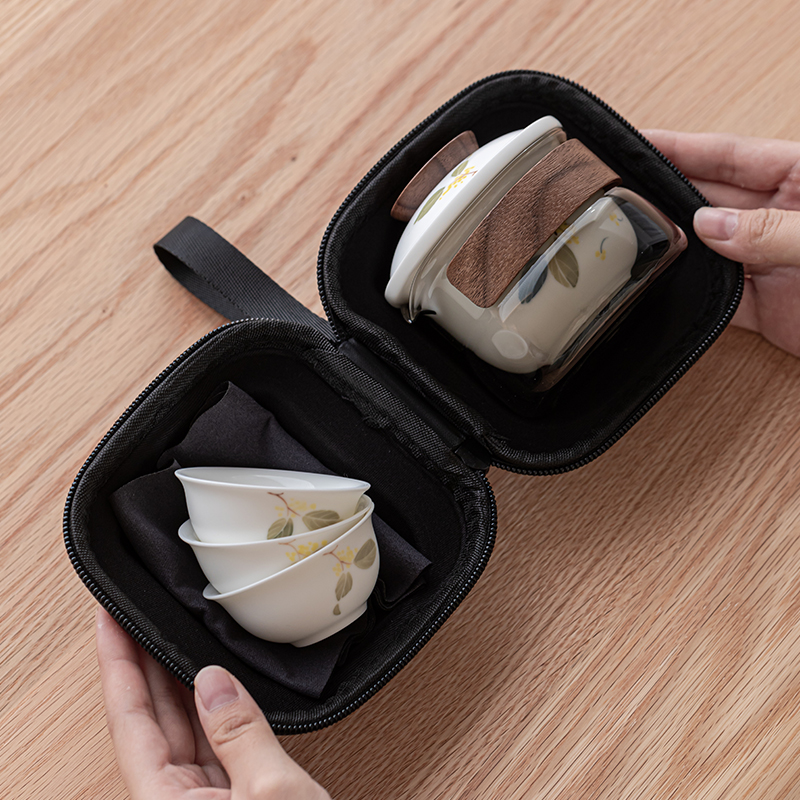 手绘桂花旅行茶具套装便携式茶具快客杯一壶三杯高颜值茶杯泡茶壶 - 尘事茶生活