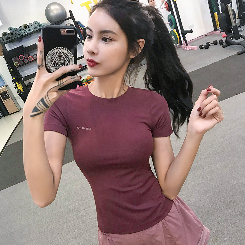 健身房上衣女短袖透气运动t恤训练款跑步紧身夏季灰色性感瑜伽服 - javcoly简可莉旗舰店