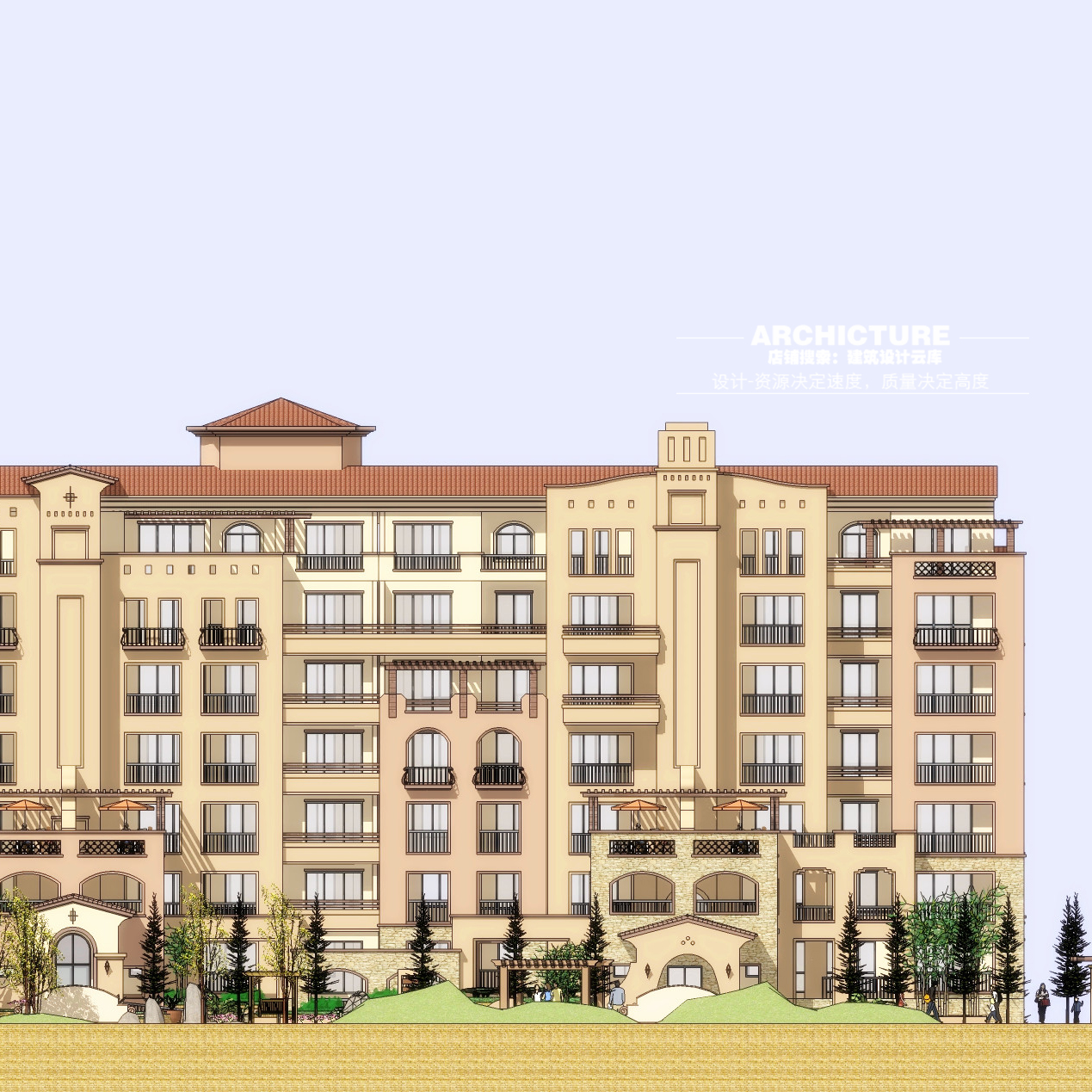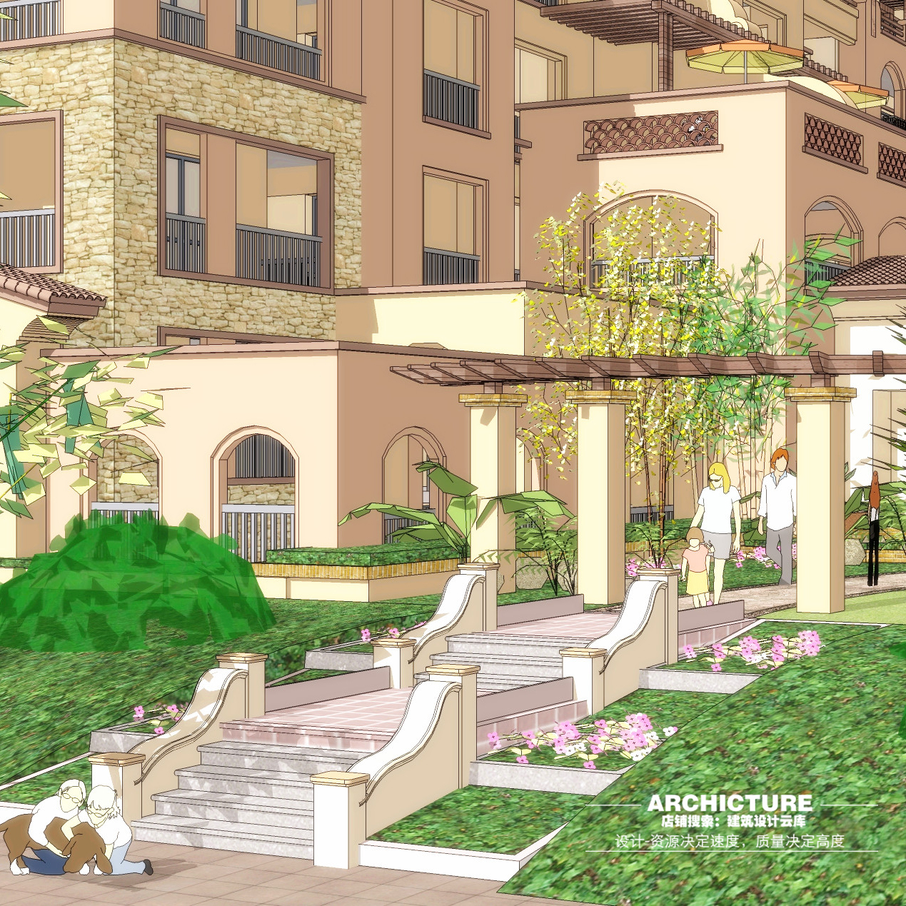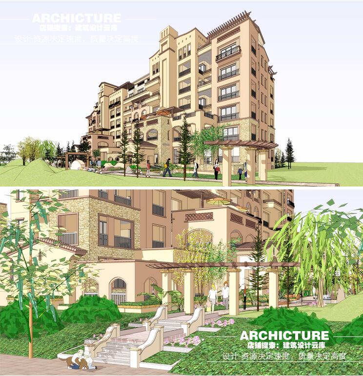 su素材现代托斯卡纳西班牙异域风情别墅洋房花园建筑设计/su模型 - 彩虹设计写意素材