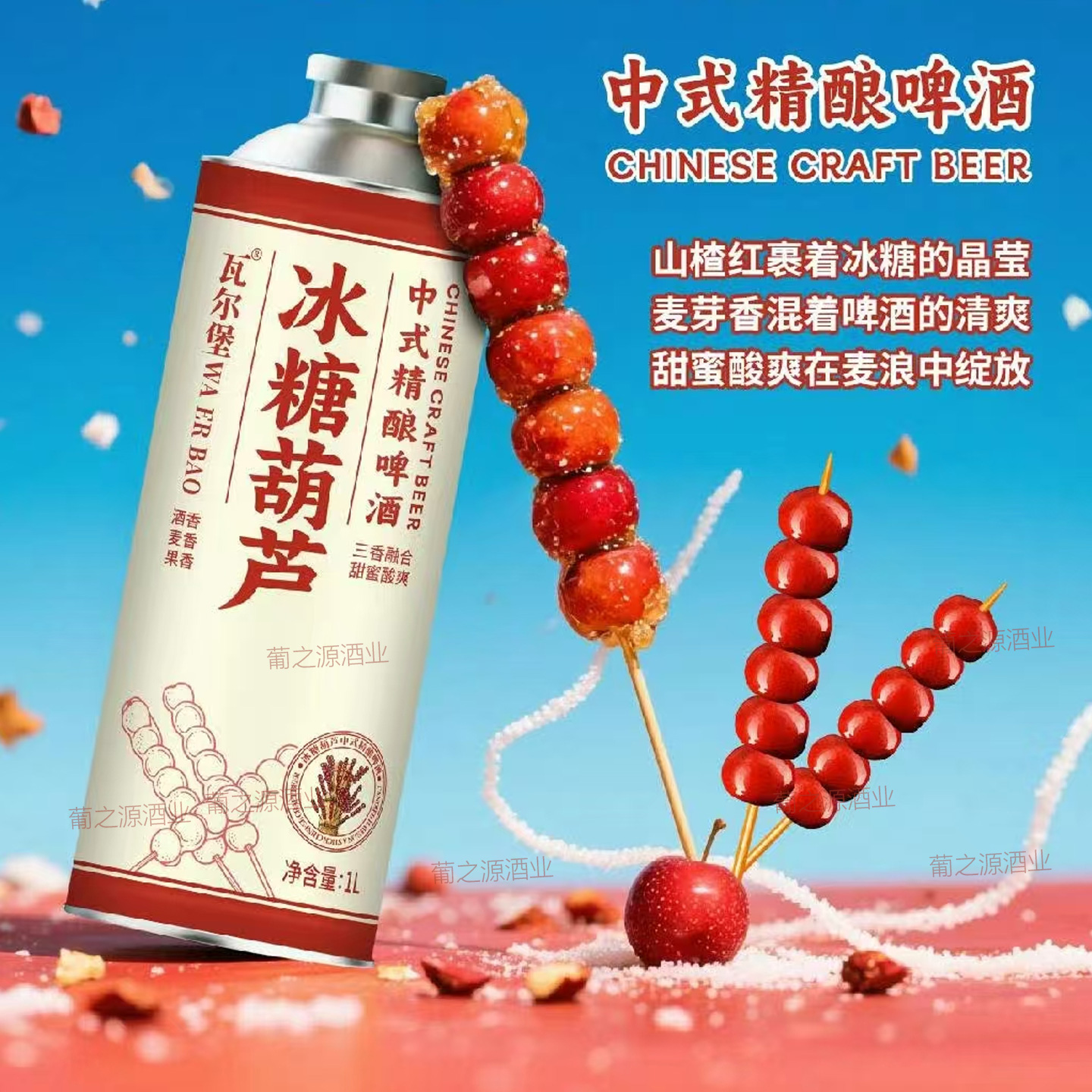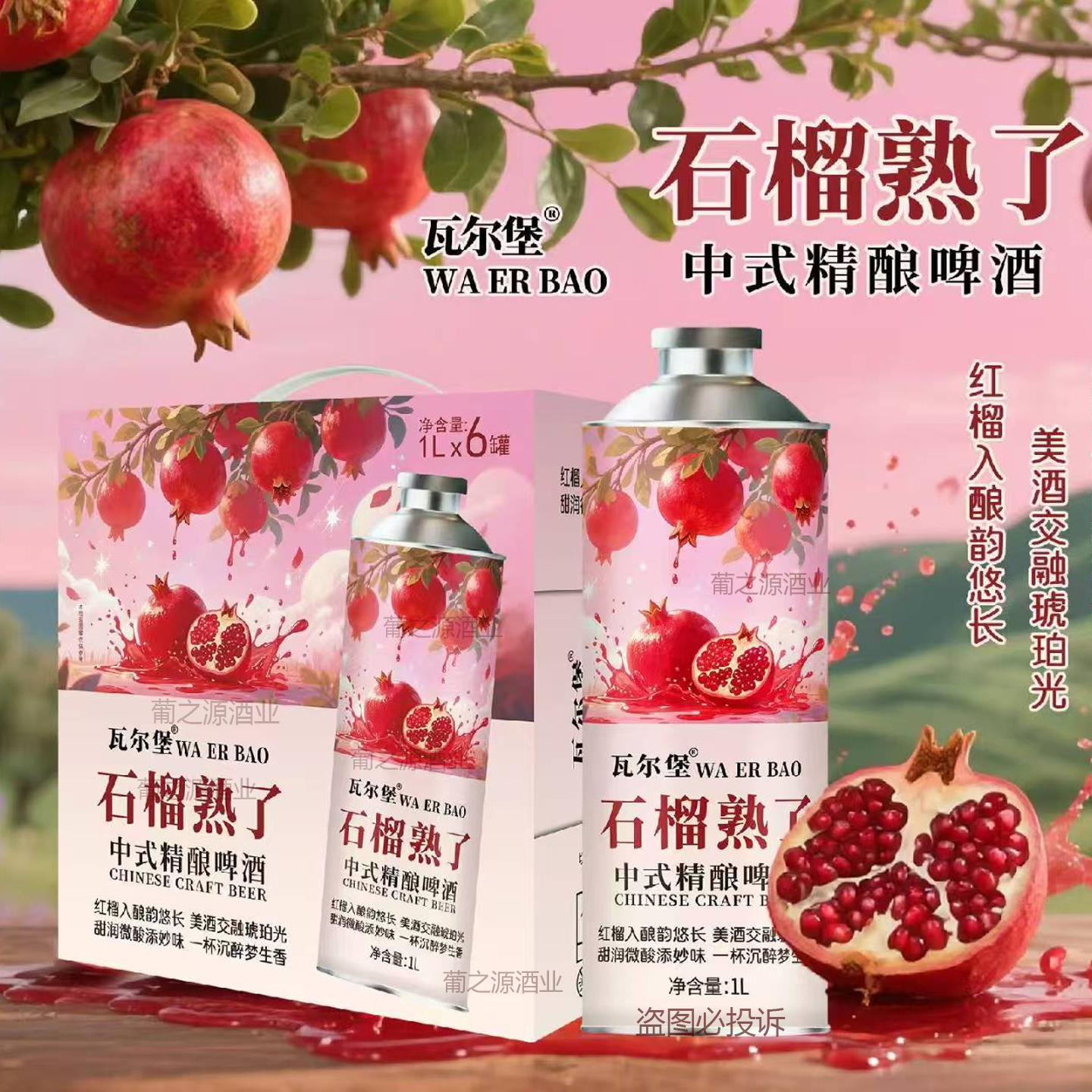 瓦尔堡石榴熟了中式精酿啤酒1L*2/6罐冰糖葫芦冰镇西瓜蔓越莓果啤 - 葡之源酒业
