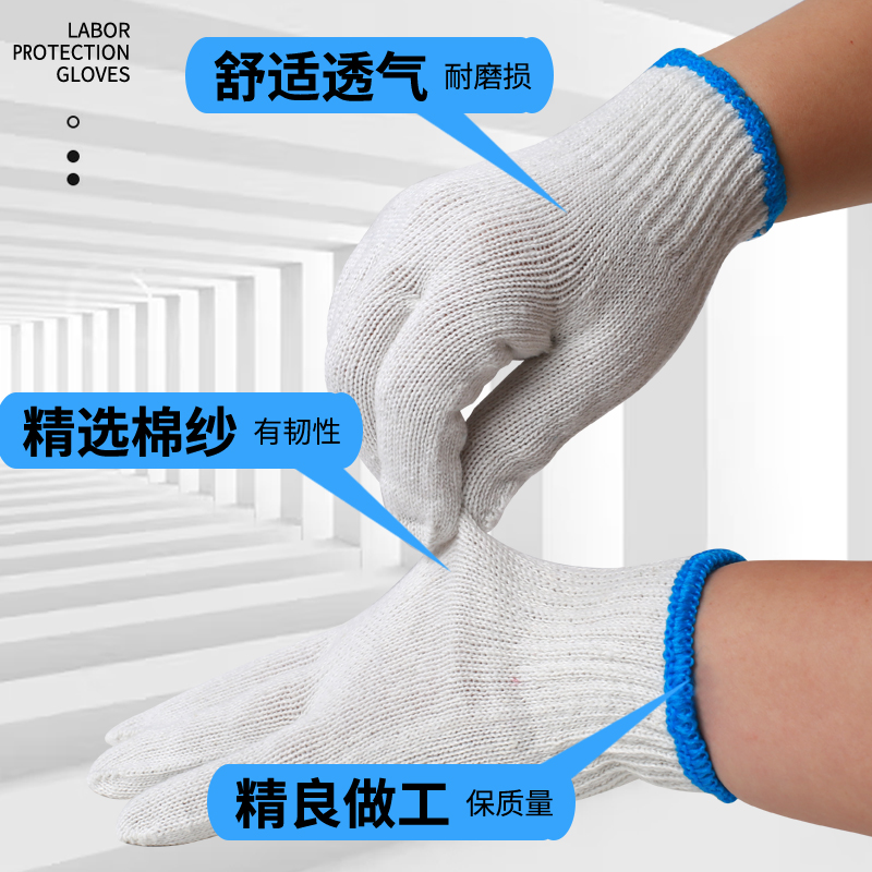 劳保手套尼龙防滑耐磨耐用白色棉线手套秋冬劳保点胶线手套批发 - 好货严选工厂