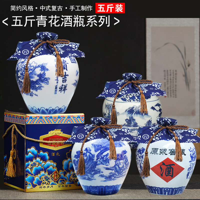 酒瓶子空瓶仿古五斤装青花家用陶瓷酒坛工艺景德镇密封窖藏土仿古 - 景艺陶瓷酒坛酒瓶厂商城