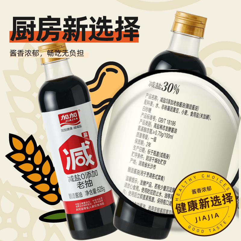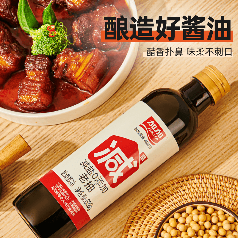 加加减盐零添加老抽628g家用酱油180天酿造炒菜凉拌无碘盐调味料 - 加加旗舰店