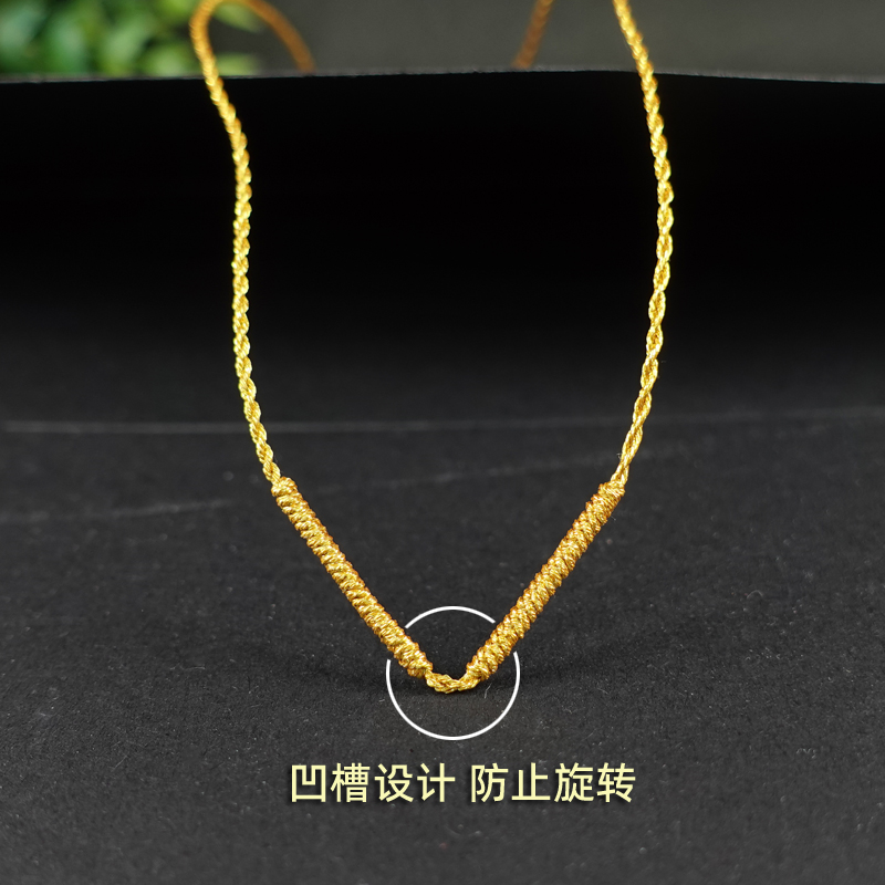 手工编织黄金吊坠用锁骨链女金银线玉坠挂绳极简项链绳14k扣特细 - 手编绳艺坊