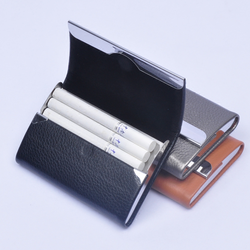 烟盒7支装 男士个性创意超薄不锈钢贴皮烟盒翻盖磁铁香於烟夹 - 思迈奢侈品