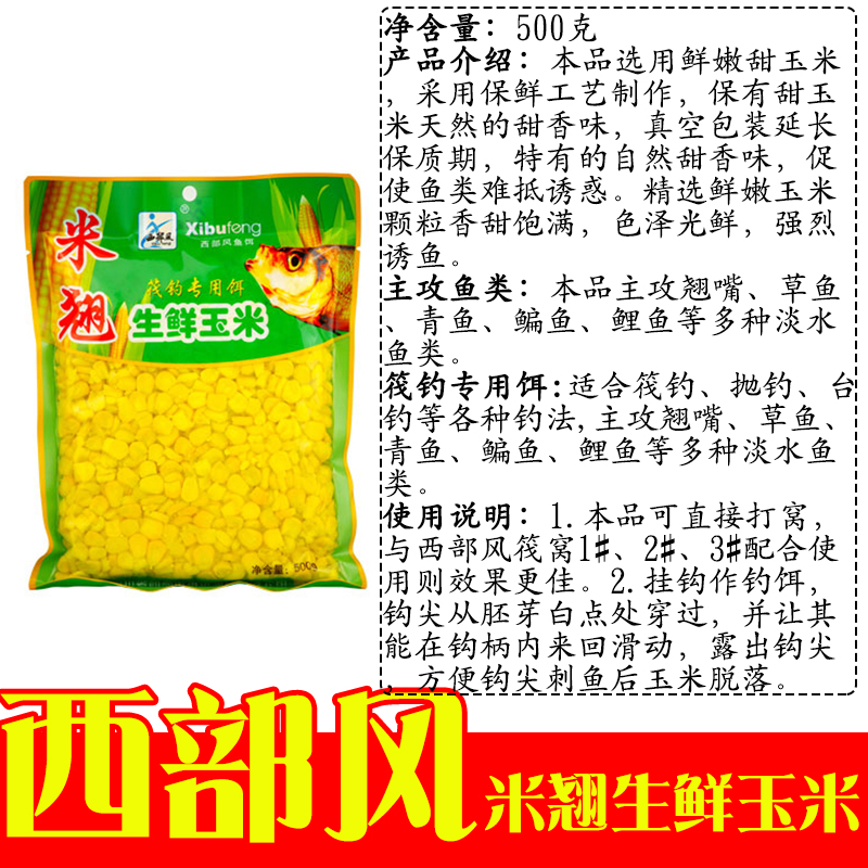 西部风鱼饵米翘生鲜玉米鲜玉米袋装筏钓专用翘嘴鲫鲤草鳊玉米钓饵 - 雅风渔具店