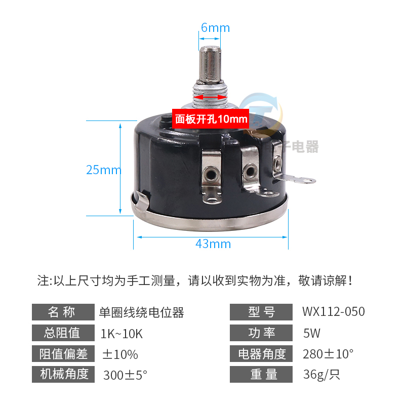 精密1K单圈10K线绕电位器5W瓦滑动050变阻器WX112帽子2K2旋钮4K7 - 常州泰明电子电器