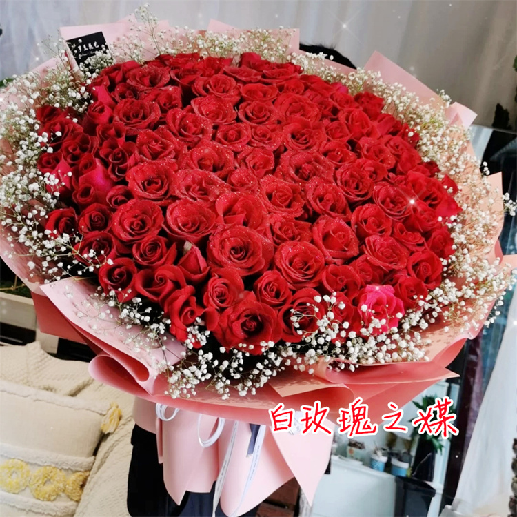 香槟红玫瑰鲜花束送男女友新疆乌苏市额敏县沙湾县福海县同城花店 - 花媒天下之白玫瑰之媒