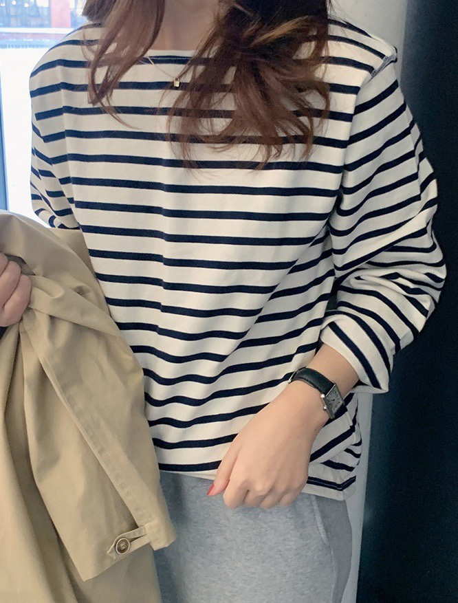 KINGHSING韩味条纹T外缝线着实时髦基础款条纹内搭外穿长袖T恤 - KINGHSING韩国原单