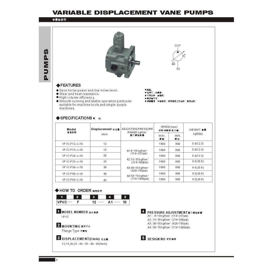 台湾CHIAWANG佳王叶片泵VPVC-F12/15/20/25/30/40/45-A1/2/3/4-10 - 苏州坤鸿机电
