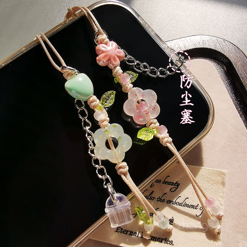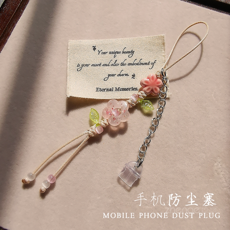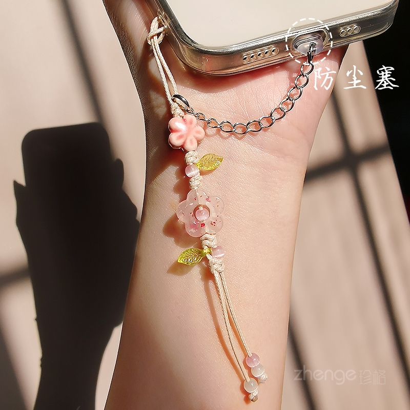 手机挂件防尘塞ins女古风花玉佩吊坠小饰品防丢绳适用苹果安卓type-c手机充电口防尘防水潮湿防脏手机配件新 - 诺派斯数码专营店