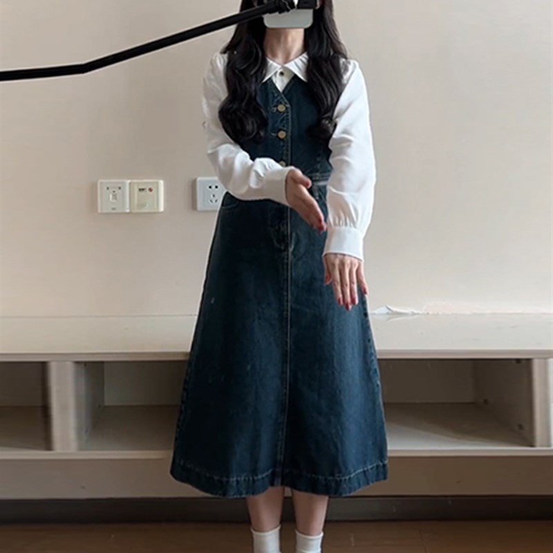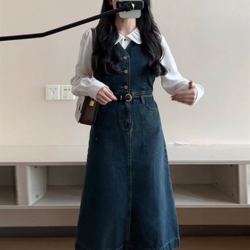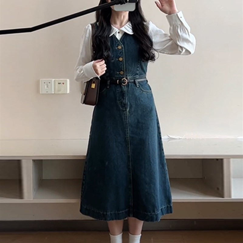 您的位置:淘折扣  >  女装  >  速发大码学院风复古牛仔连衣裙新款收腰宽松小众背带裙