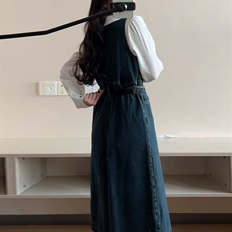 速发大码学院风复古牛仔连衣裙新款收腰宽松小众背带裙 - 岚延商贸