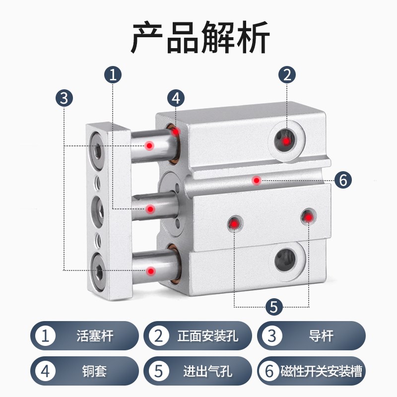 MGJ小型迷你气缸微型三轴三p杆气缸TCM6X5X10X15X20X25X30S F8BL - 信达枣林商城