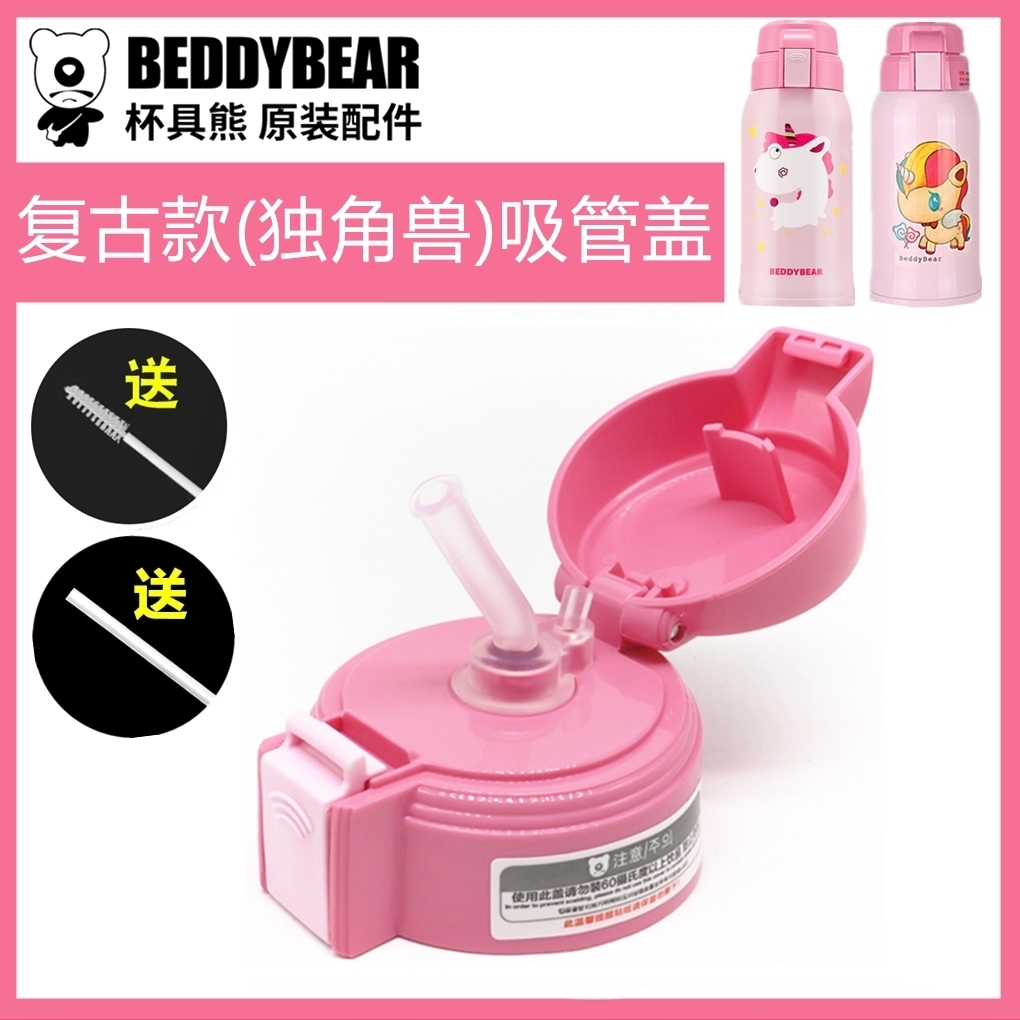 原装杯具熊浮雕复古粉独角兽保温杯吸管盖配件吸嘴杯盖杯套密封圈 - 杯具熊中国区总店