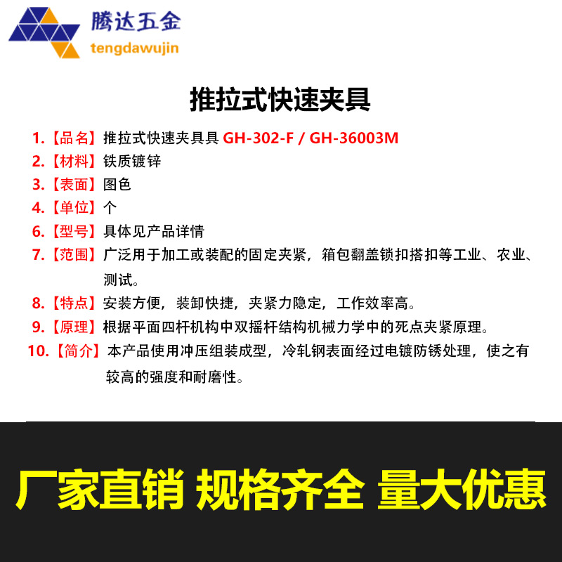 推拉式快速夹具/夹钳/压紧器GH-302F GH-36003M 焊接夹 固定夹具 - 无锡腾达五金