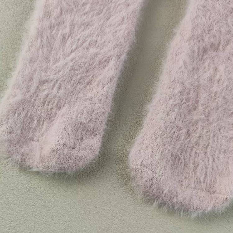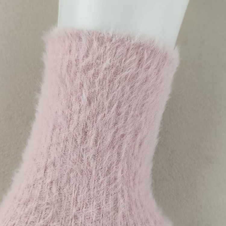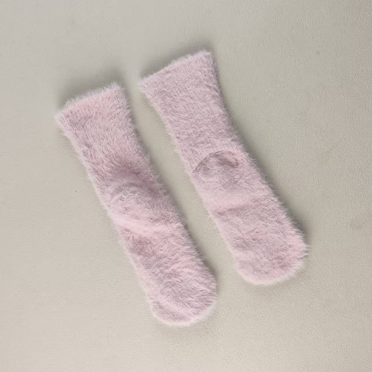 外贸库存小码女士中筒粉色秋冬加厚保暖女袜子仿貂毛睡眠居家地板 - 淘淘库存