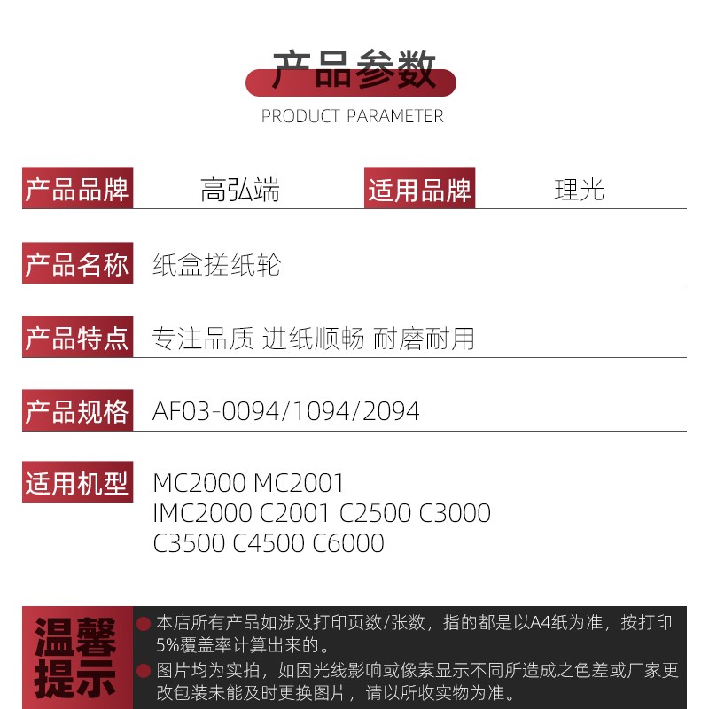 适用理光MC2000 MC2001进纸轮 MPC5503 C5504 2554 IMC2000 C2001 - 万澄工厂
