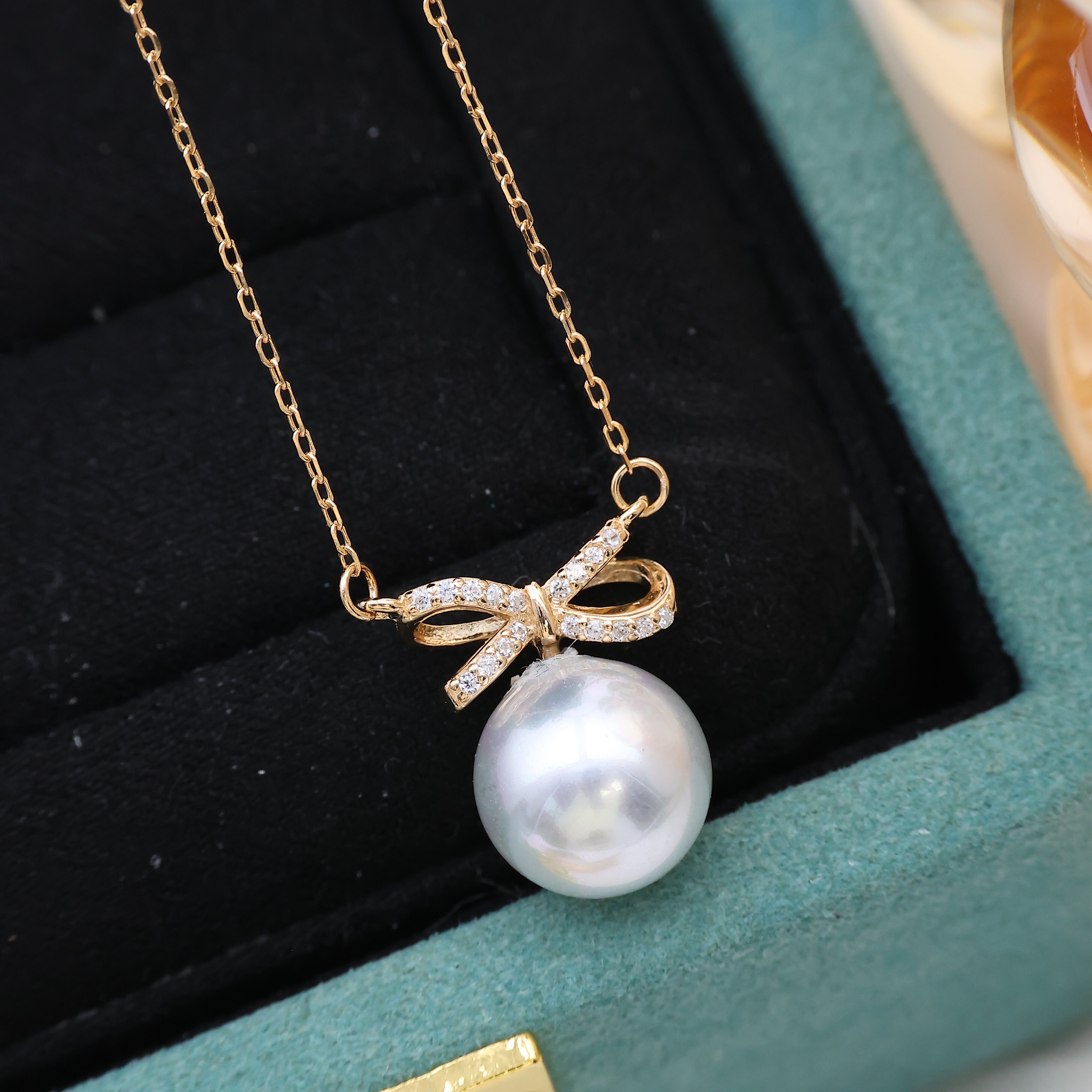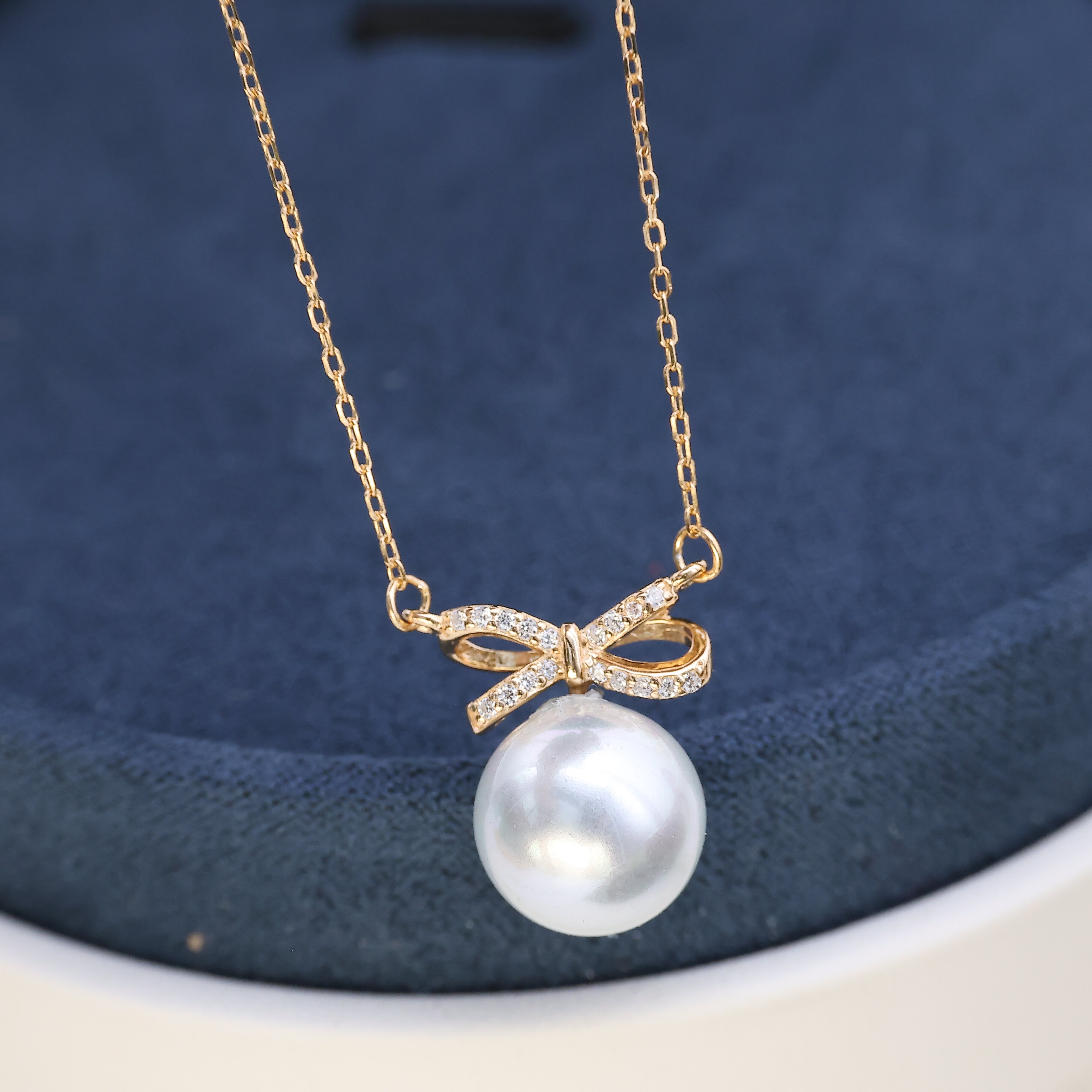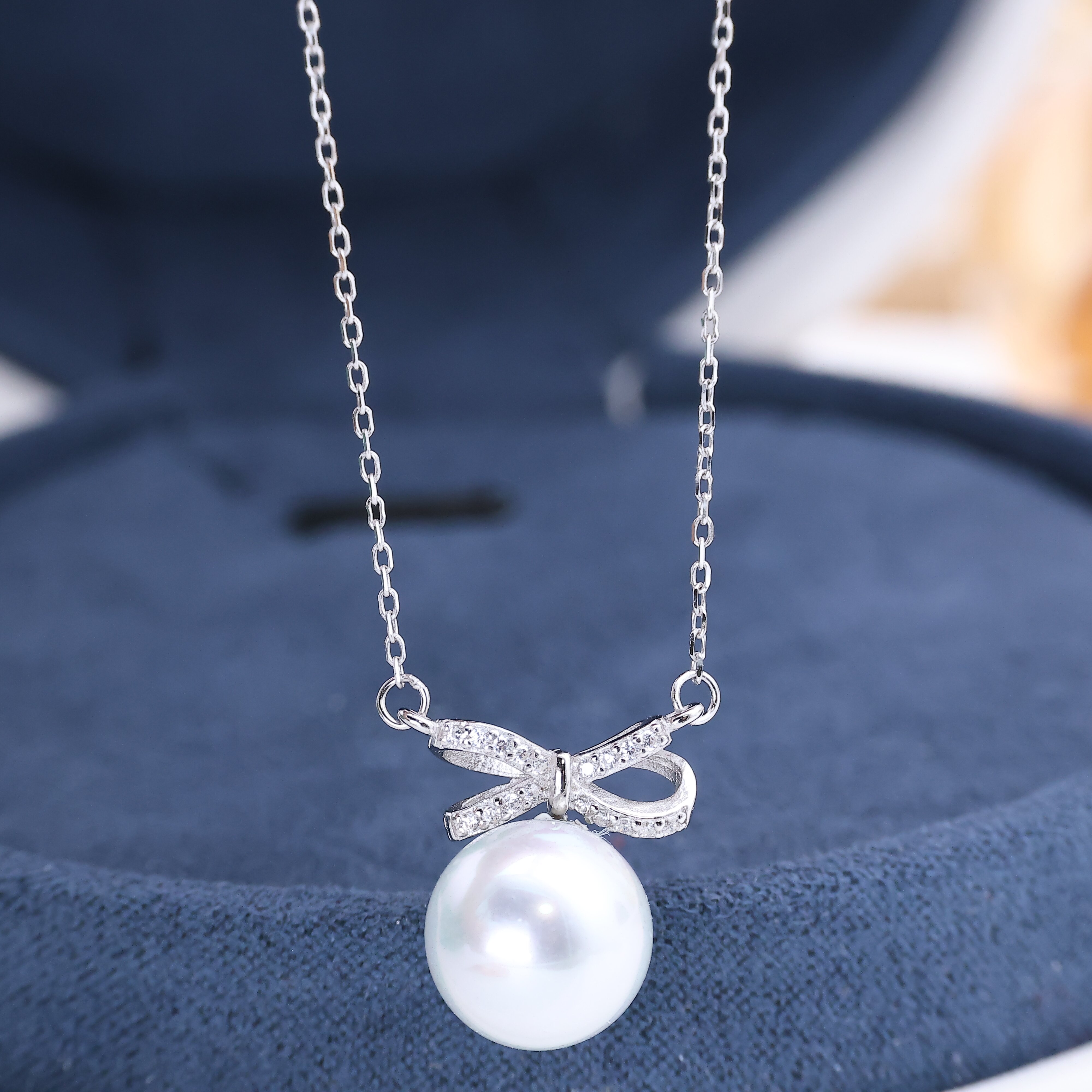 DIY珍珠配件 S925纯银蝴蝶结套链空托 含吊坠项链项坠8-11mm圆椭 - 铖爱珍珠配件厂家批发