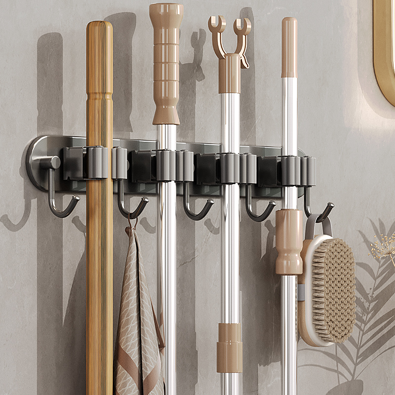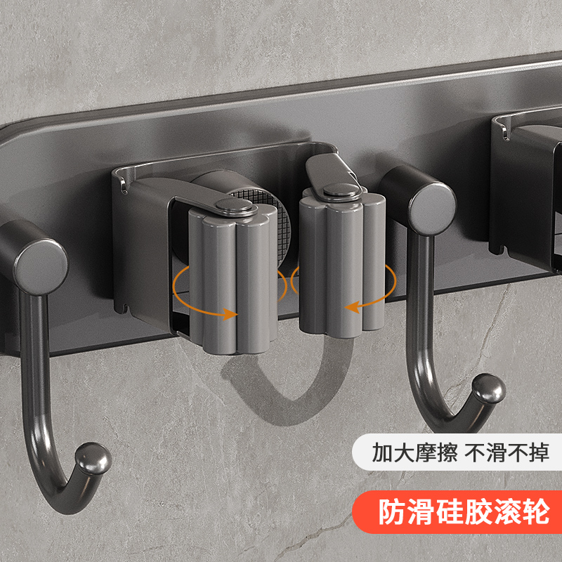 拖把壁挂夹免打孔卫生间拖把架收纳神器大挂钩挂拖把扫把固定架 - 敖马旗舰店