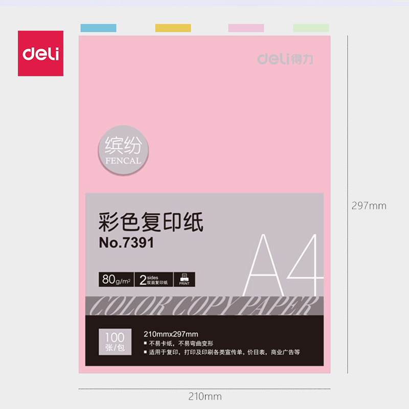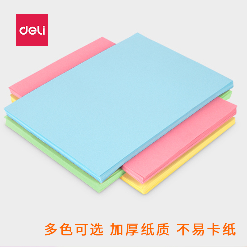 100张得力A4彩色复印纸电脑办公双面打印加厚80克彩纸儿童手工大号折纸办公用纸批发包邮 - deli得力粤丰专卖店