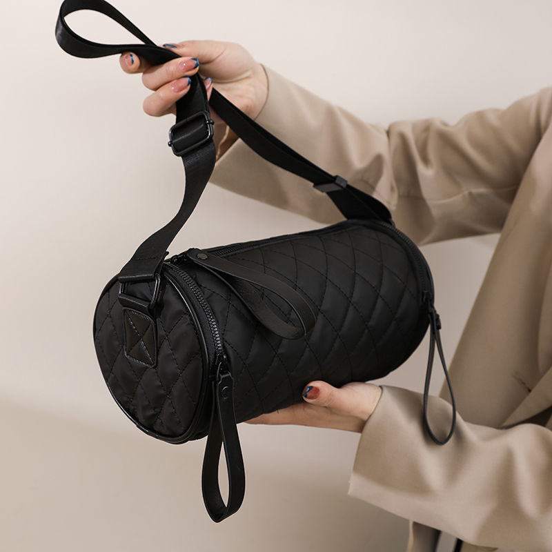 牛津布圆筒斜挎包女横版小众枕头洋气百搭大容量水桶包斜挎单肩包 - 卡帝乐鳄鱼宏丰专卖店