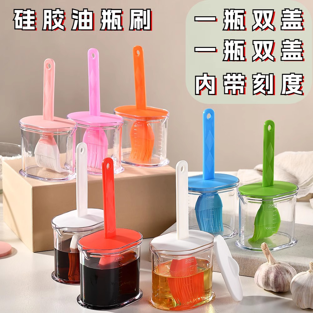 带瓶一体式带盖家用耐高温烧烤刷硅胶厨房烘焙刷子厨房油壶酱料瓶 - 樱圣旗舰店