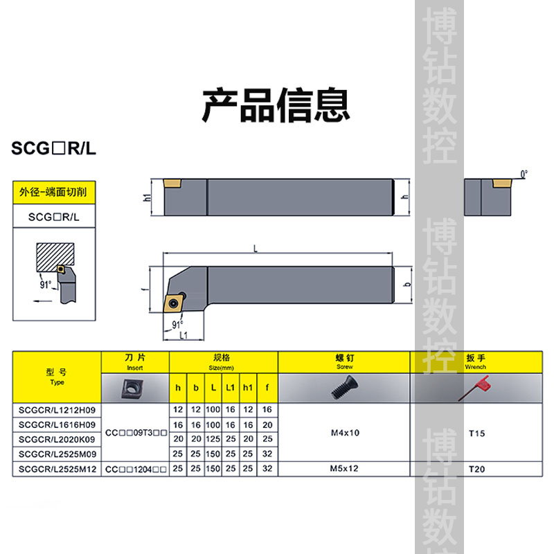 90度螺钉式数控外圆车刀刀杆SCGCR1212H09/1616H19/1010H06车床刀 - 博钻数控刀具