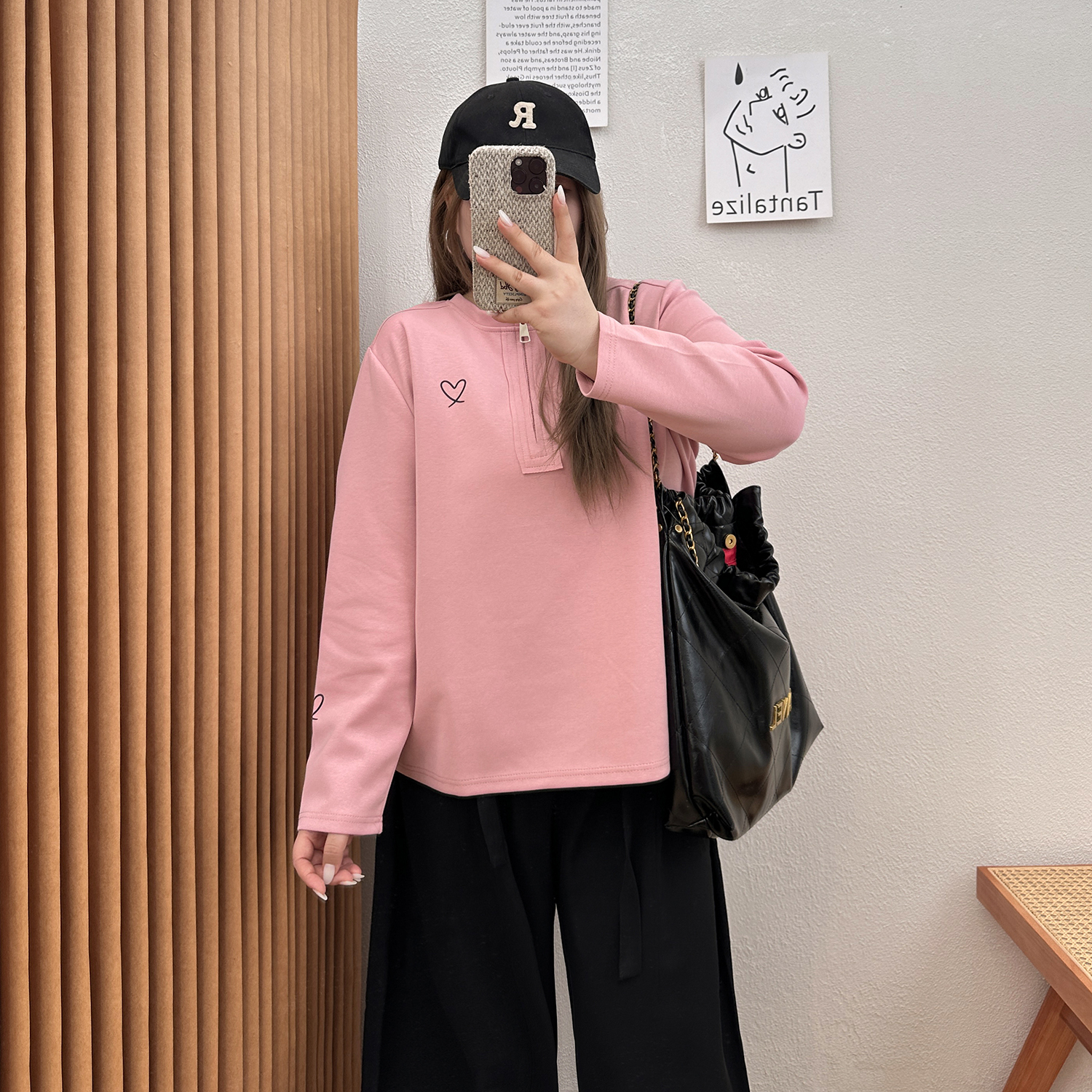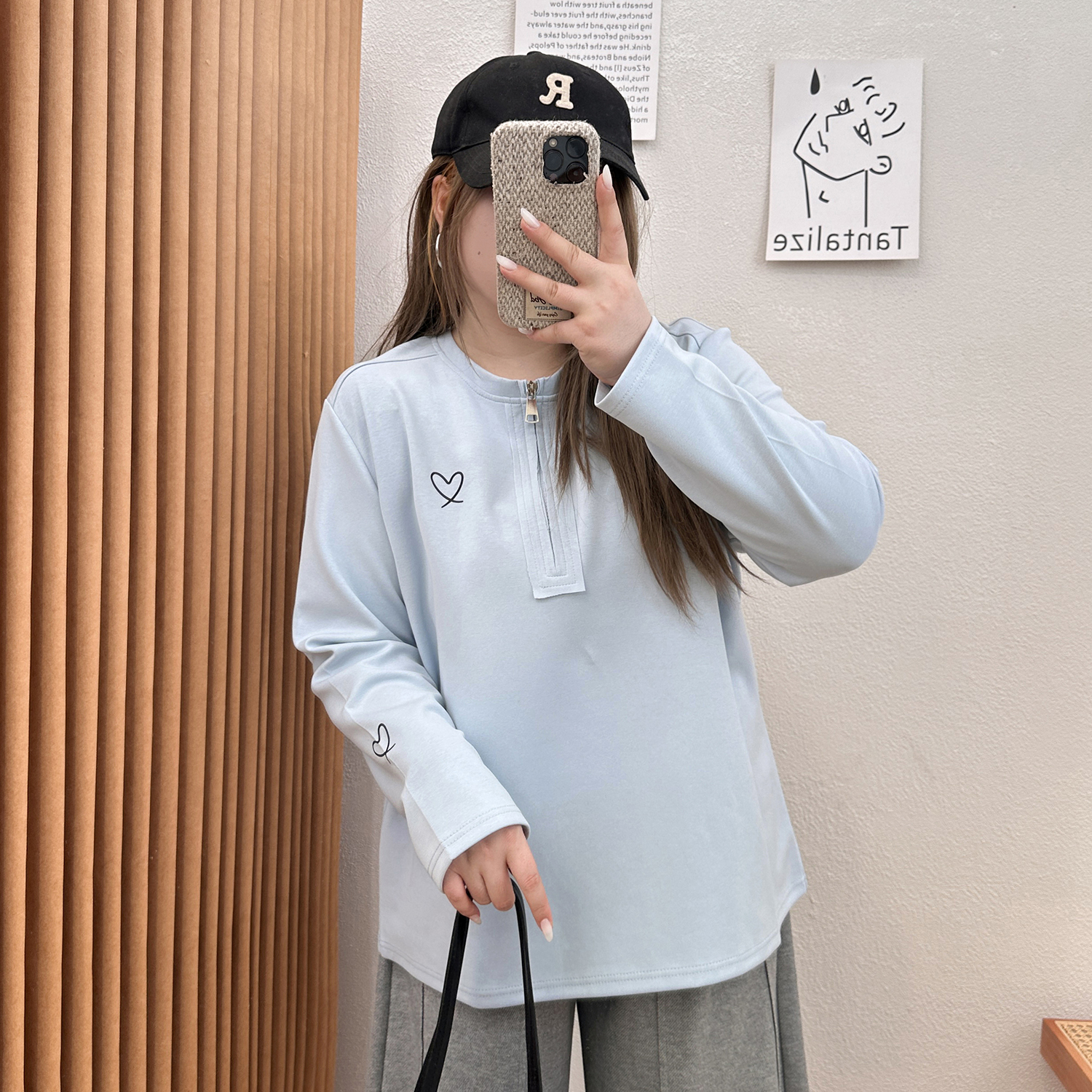 宛宛大码胖mm正肩女长袖t恤秋季爱心修身拉链内搭打底衫短款上衣 - CAT宛宛大码衣橱