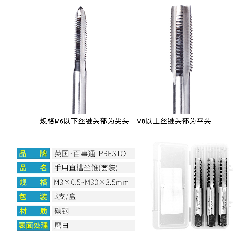 百事通PRESTO进口高速钢手用丝锥丝攻螺纹攻牙钻头螺丝开牙器工具 - 让韵丰优选