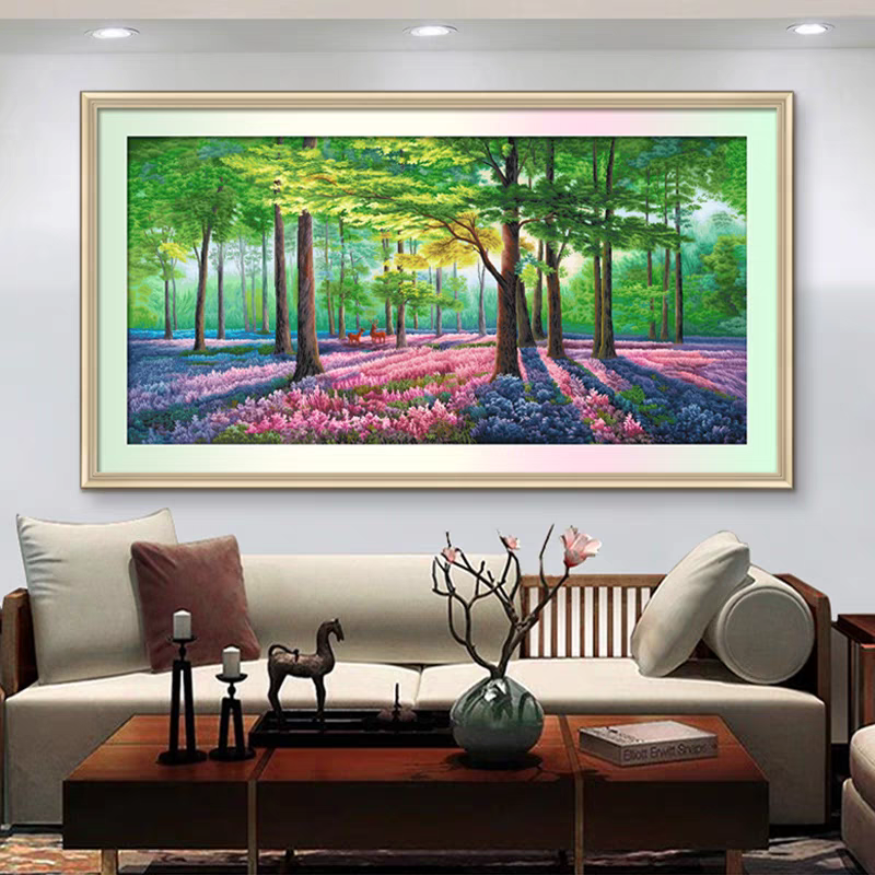 ks十字绣林间翠碧新款自己绣手工diy棉线满绣124色清新印花套件 - ks家居用品正品店