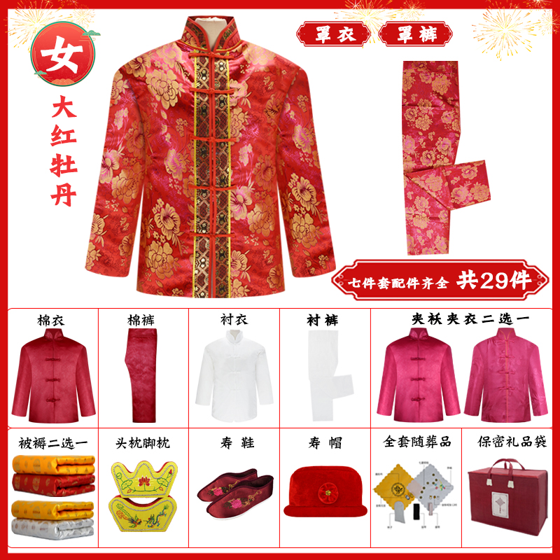高档寿衣男女七件套真丝织绵老人寿终殡葬用品寿服上四下三配件全 - 瑞缘寿衣厂家批发