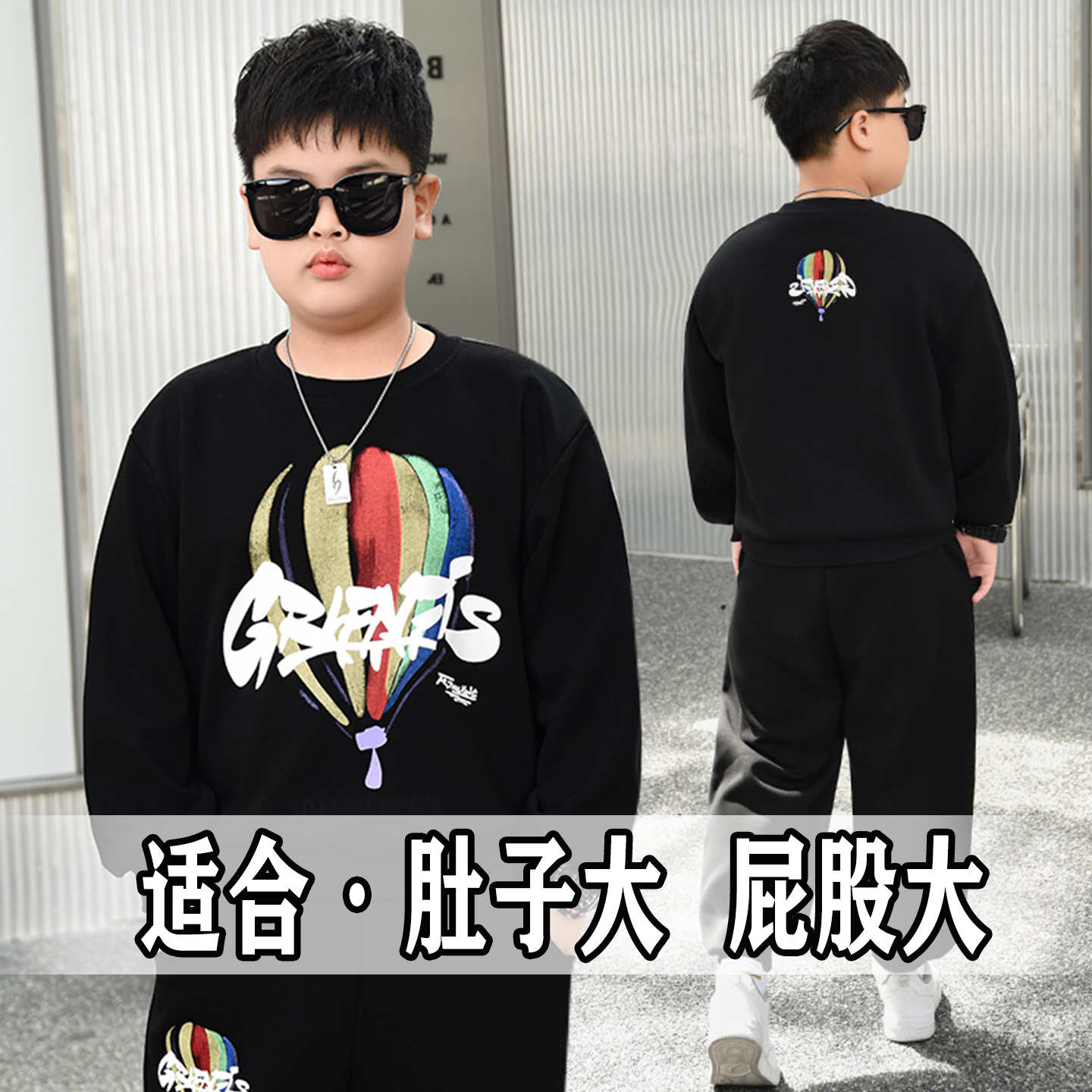 胖男童长袖T恤加肥加大秋装新款中大童圆领打底衫宽松运动卫衣潮 - 胖嘟嘟专属童装店