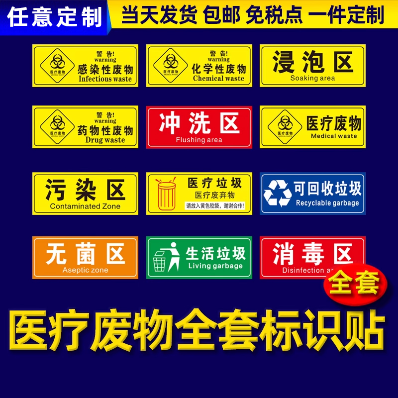 医疗废物标签贴定制医院垃圾桶分类贴纸医疗废弃物标识牌感染损伤化学性废物标志标贴医院警示标识贴 - 瑞客来祥旗舰店