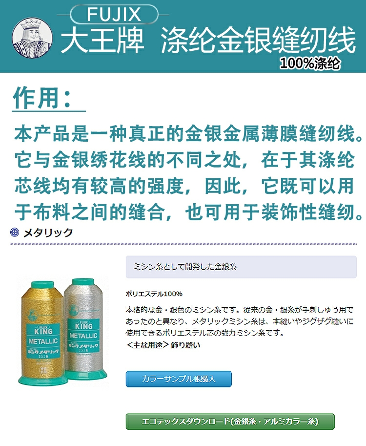您的位置:淘折扣  >  居家  >  日本FUJIX富士克大王金银缝纫线绣花线装饰线五彩线手工DIY