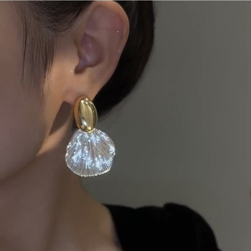 925银针高级感简约贝壳形金属复古气质耳饰小众冷淡风耳钉耳饰女 - 草长莺飞江南岸