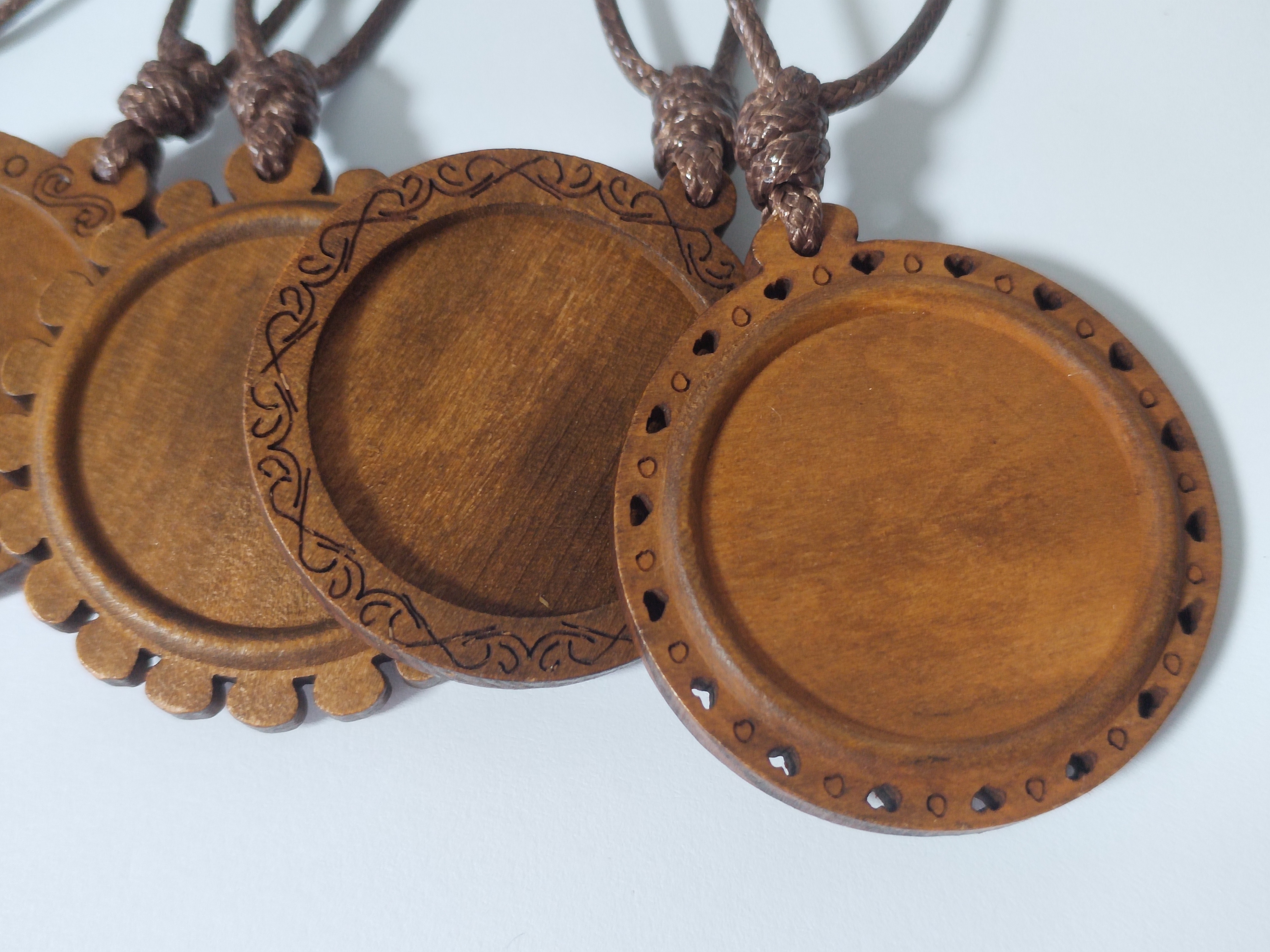 刺绣扎染项链DIY时光宝石木头底托镂空印花花边底托木头项链浅咖 - 秭薇苑 手绣坊 今布瑶文创