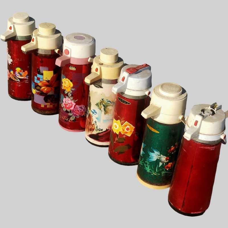 民俗老物件老式暖瓶水壶保温热水瓶壶绿色铁皮暖壶竹子老式压力 - 旧时光民俗文化批发站