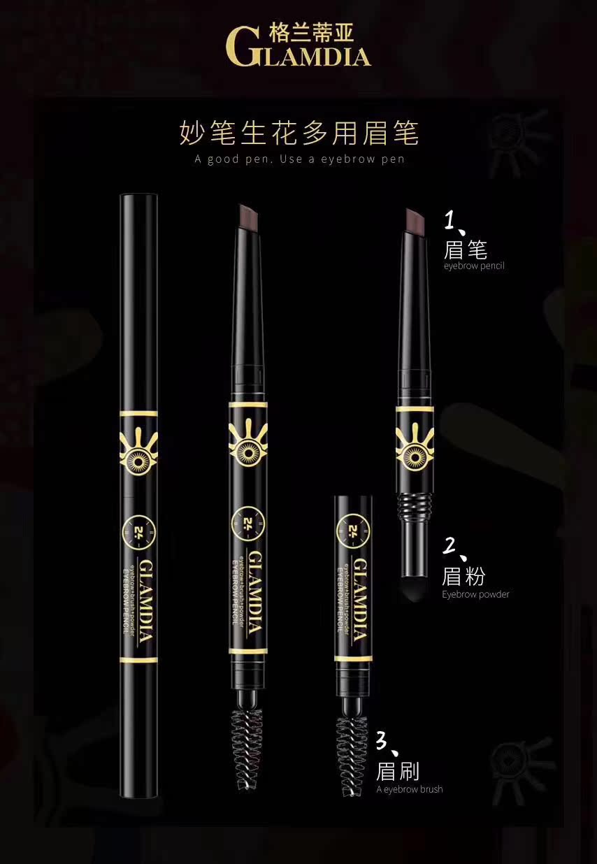 格兰蒂亚妙笔生花多用眉笔三头眉刷粉深咖啡灰咖眉目传情持久 - 俊妤名妆