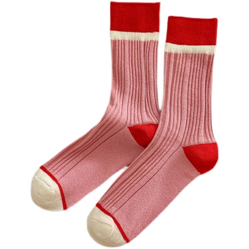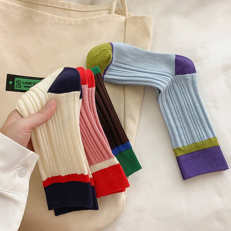 个性撞色袜子女中筒袜春秋冬季ins潮网红街头风运动日系长筒棉袜 - 一亩袜田 Socks