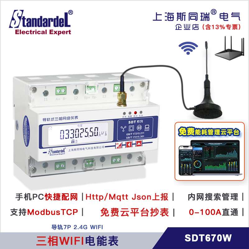 WIFI无线三相多功能电表/SDT670W/物联网MQTT/HTTP/ModbusTCP/2.4 - 夫林外贸商城