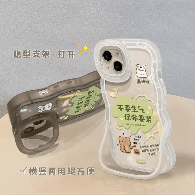 板凳双支架绿框文字适用苹果15proamx手机壳华为mate60pro新款Pura70女OPPOReno12暴富VIVOS19全包小米14 - 甜心时尚优品