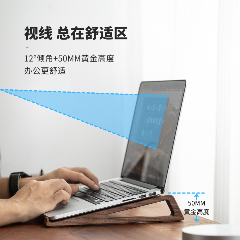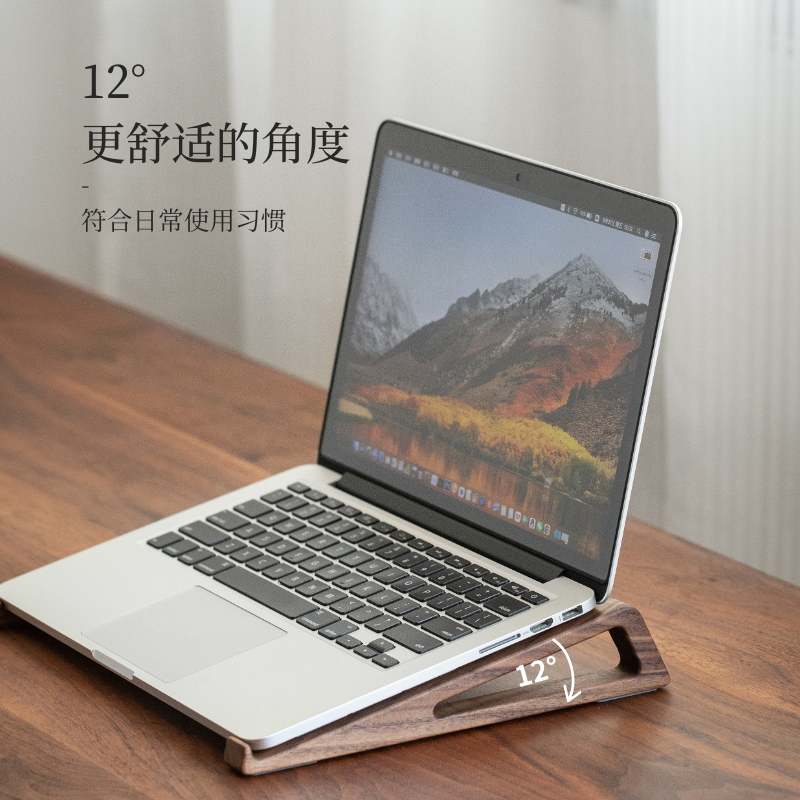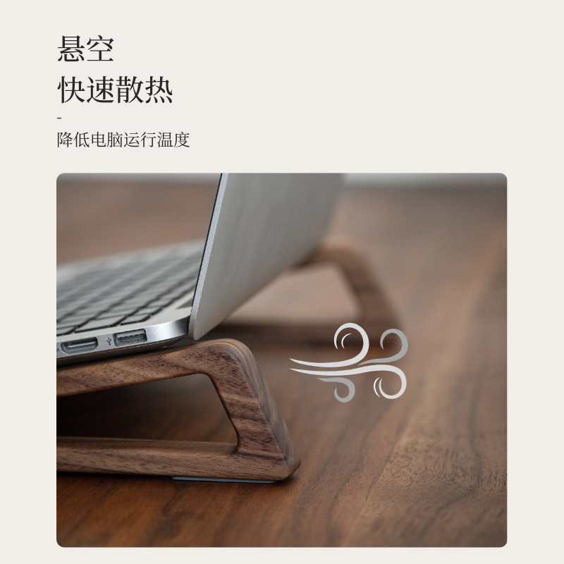 黑胡桃木笔记本电脑支架托架极简侧立家用桌面实木增高悬空散热宿舍游戏本底座便携办公室电脑专用支撑架子 - 木说旗舰店