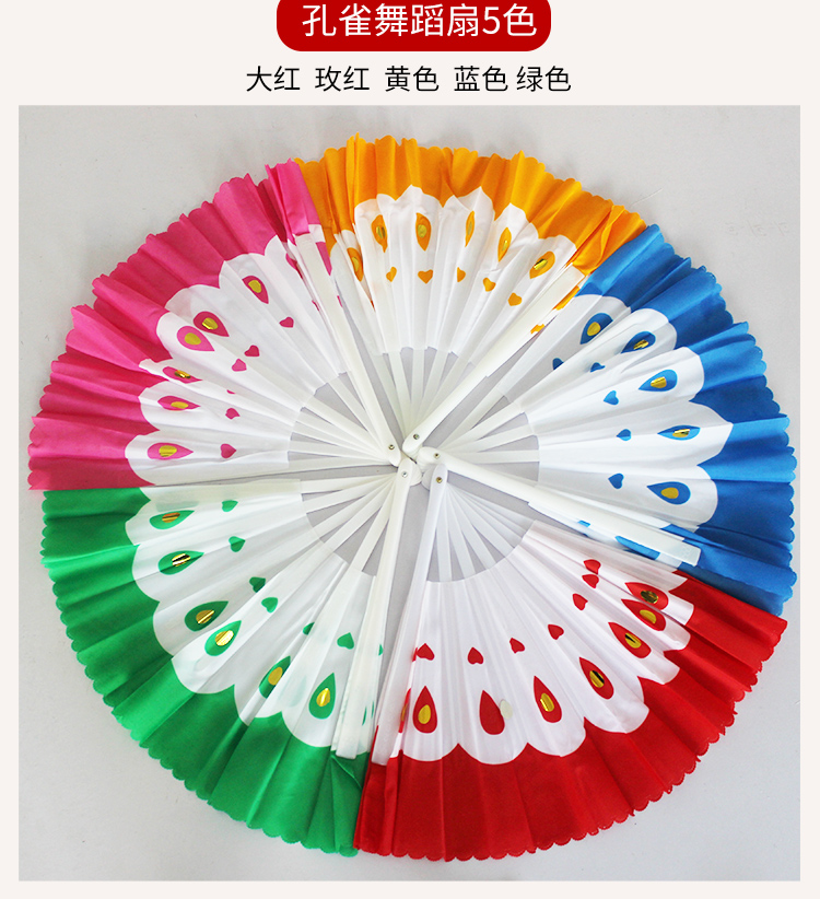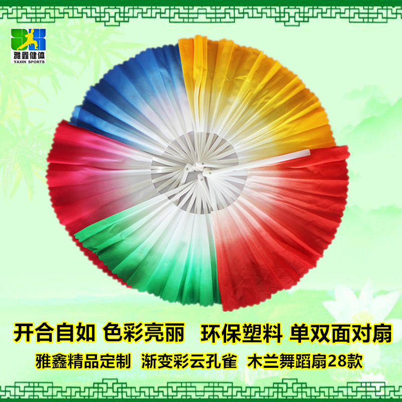 龙拳渐变彩云孔雀木兰双面左右手对扇古风广场舞蹈响扇金红黄绿色 - 雅鑫工厂店