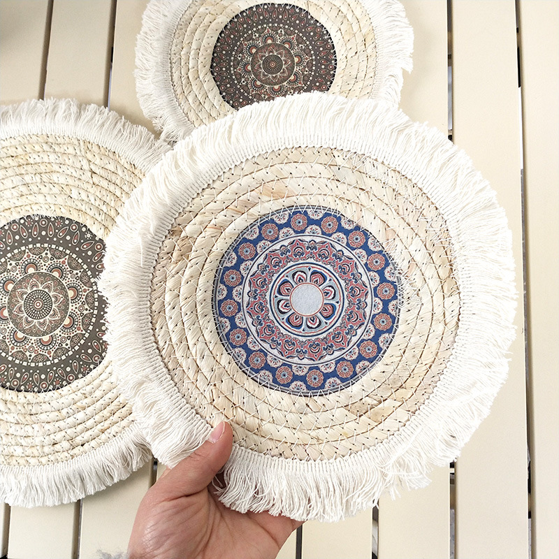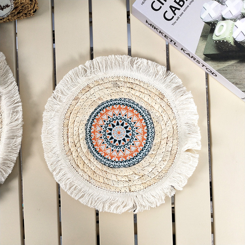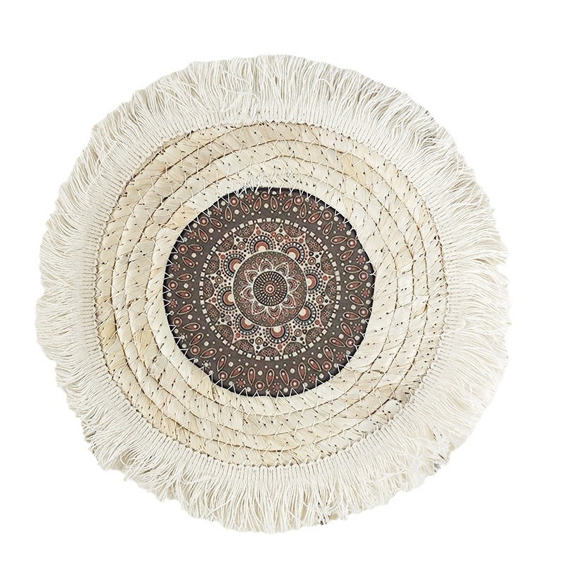 波希米亚风圆形餐垫玉米皮编织流苏隔热餐垫民宿茶杯垫餐桌装饰 - d[s268133908]
