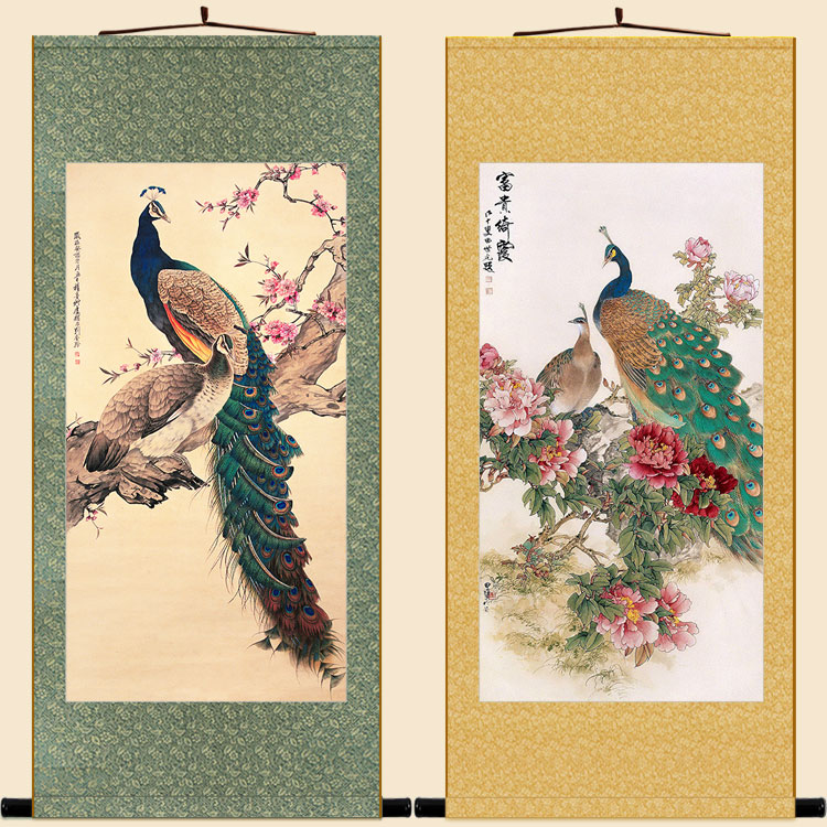 富贵绮霞图 田世光刘奎龄孔雀花鸟画卷轴挂画 复古书房装饰画定制 - 扬升汇企业店
