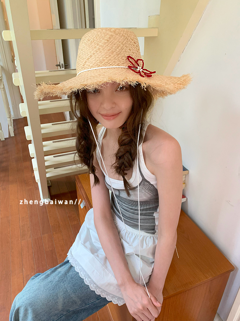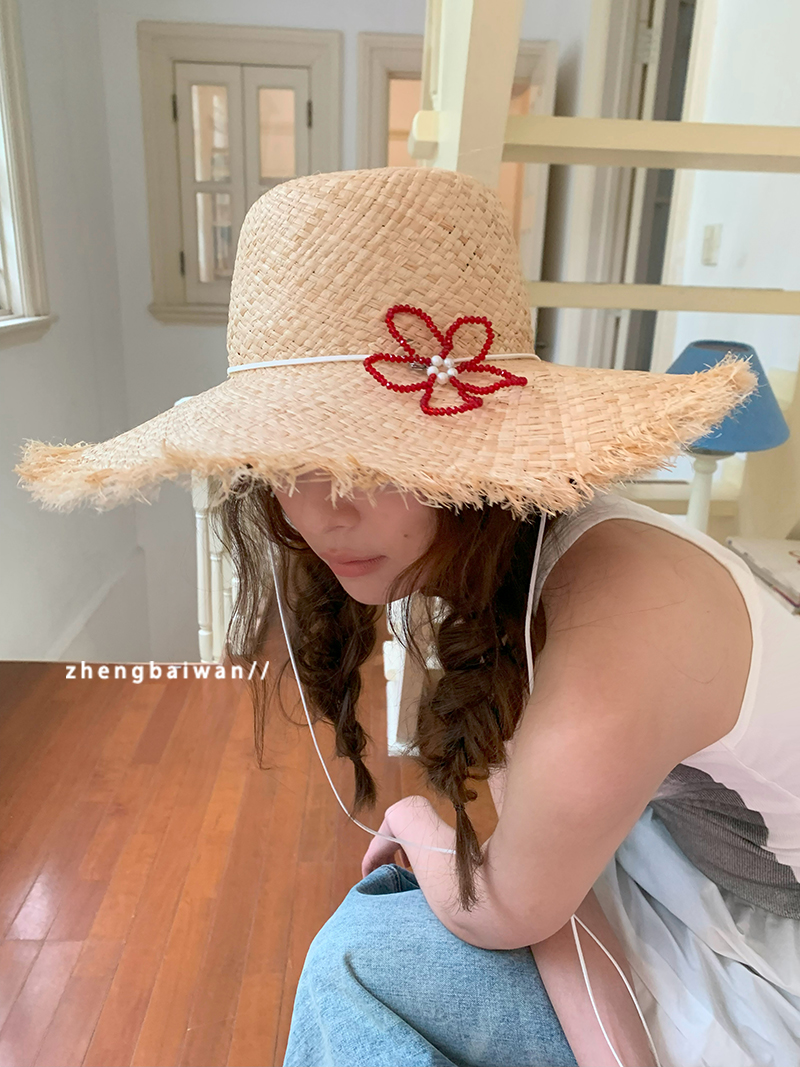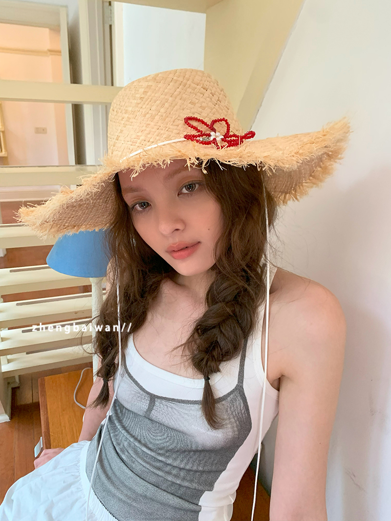 郑佰万 沙滩防晒草帽女防紫外线夏季防晒拉菲草度假海边太阳帽潮 - 郑佰万[something needs]