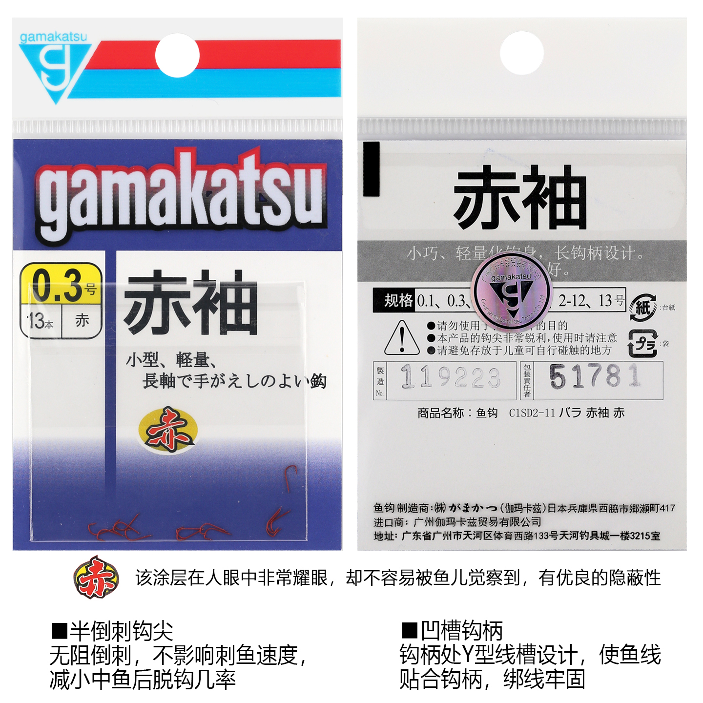 伽玛卡兹赤袖C1SD2鱼钩有倒刺进口伽马卡兹赤色钓钩白袖有倒刺钩 - 水中乐渔具