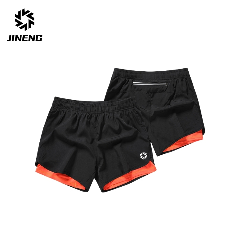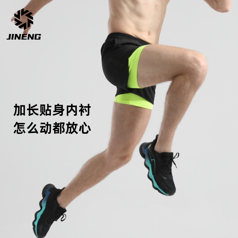 积能二合一运动短裤男夏季透气马拉松竞速跑步裤训练短裤内衬口袋 - 积能
