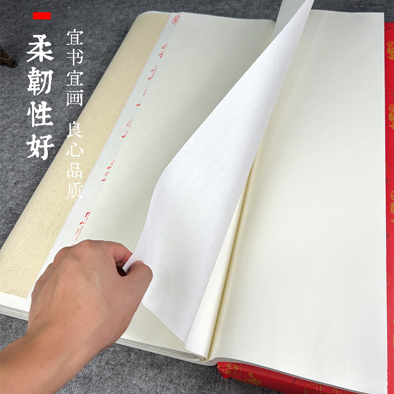 加厚特净玉版宣纸四尺六尺和对开书法国画专用生宣半生半熟作品纸 - 夹江万宝阁纸厂
